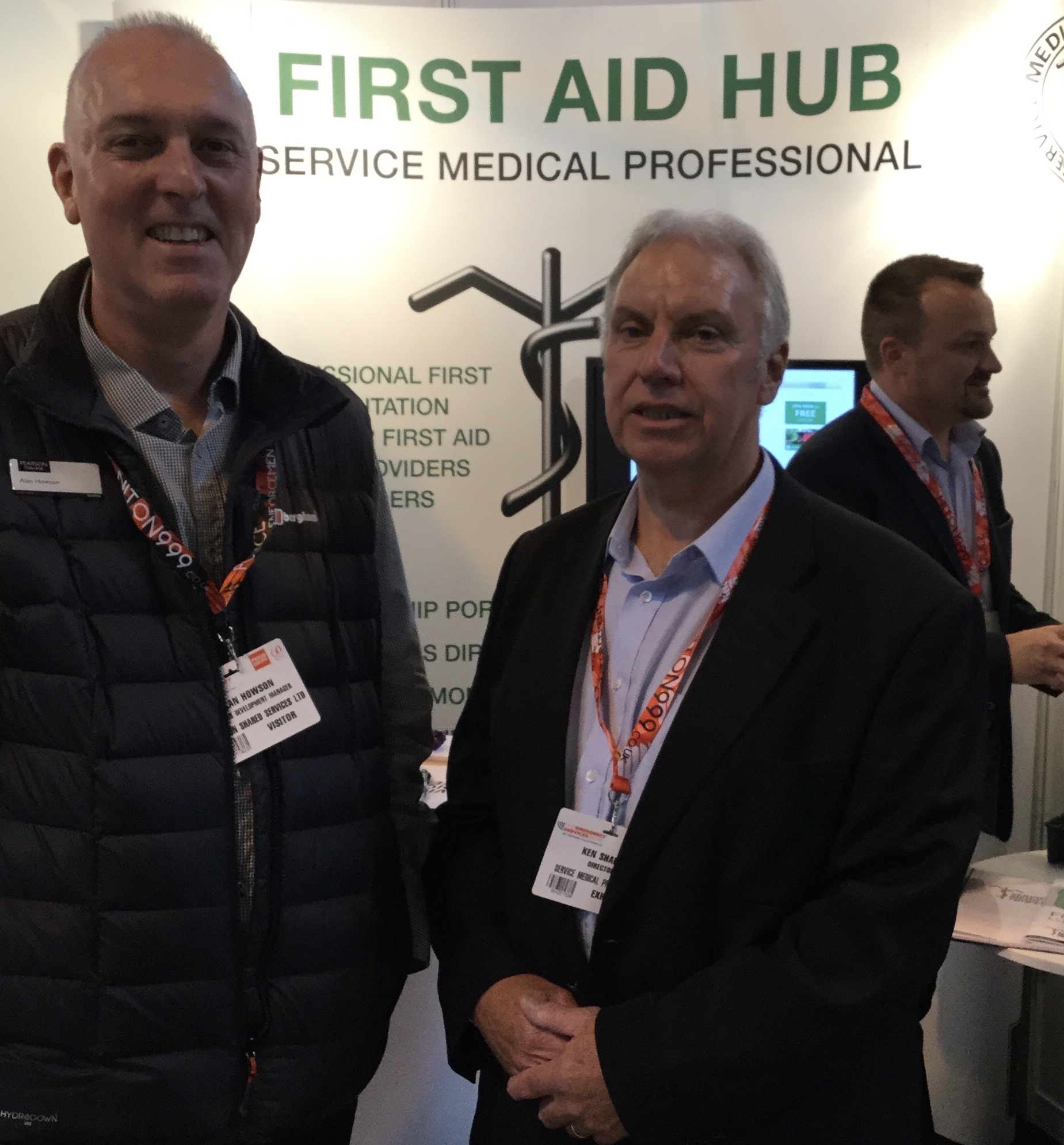 A reunion of the creators of FPOS at the SMP First Aid Hub at the Emergency services show. Alan Howson From Pearsons and our own Ken Sharpe.
